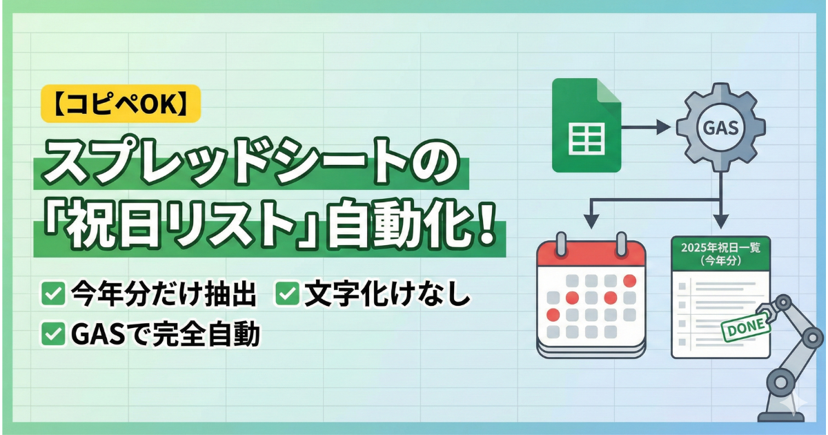 そこで今回は、Google Apps Script(GAS)を使って、今年分だけ正確な祝日リスト文字化けなし自動作成する方法をご紹介します。